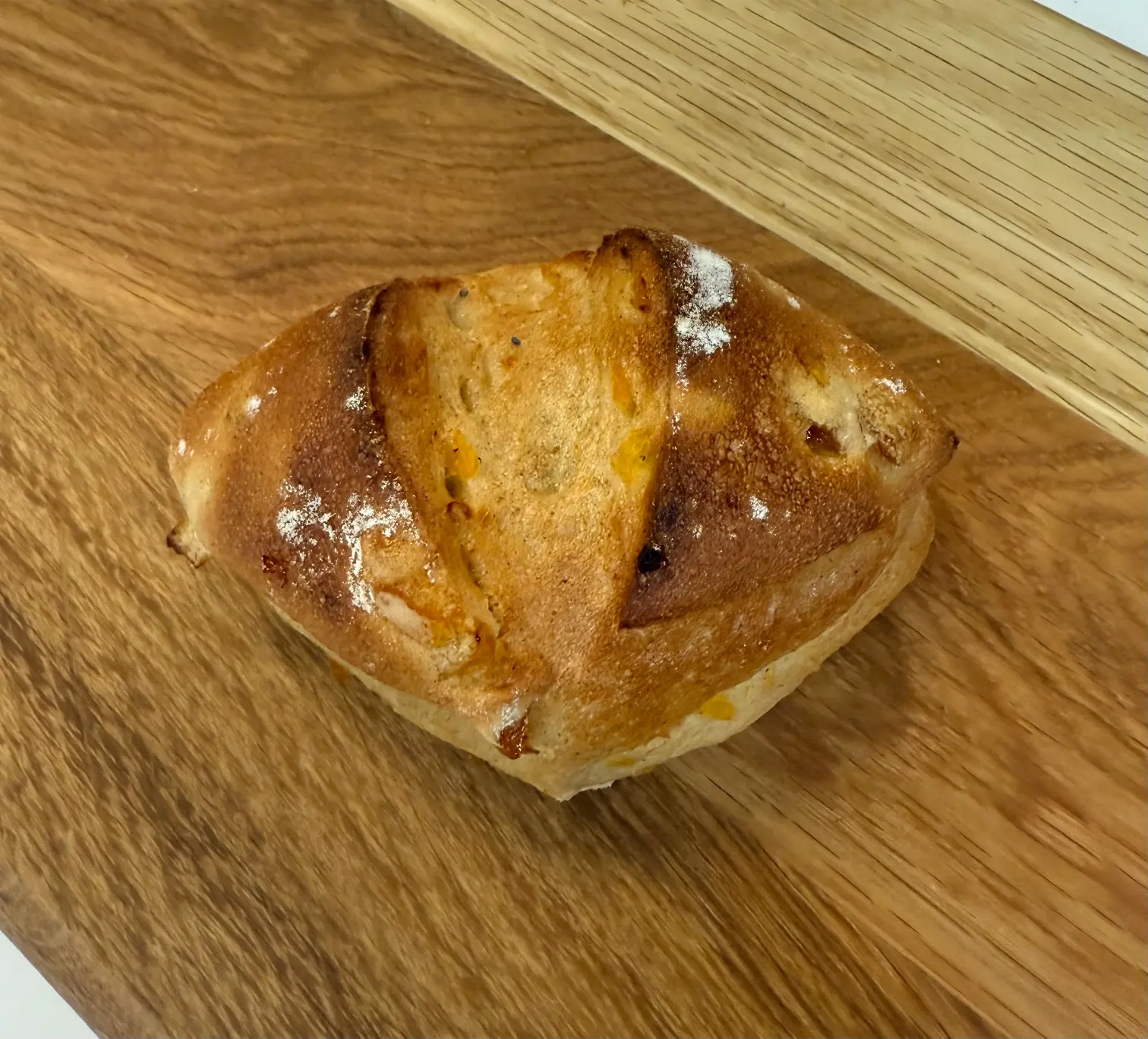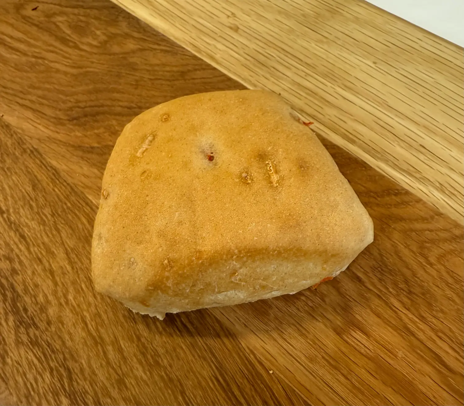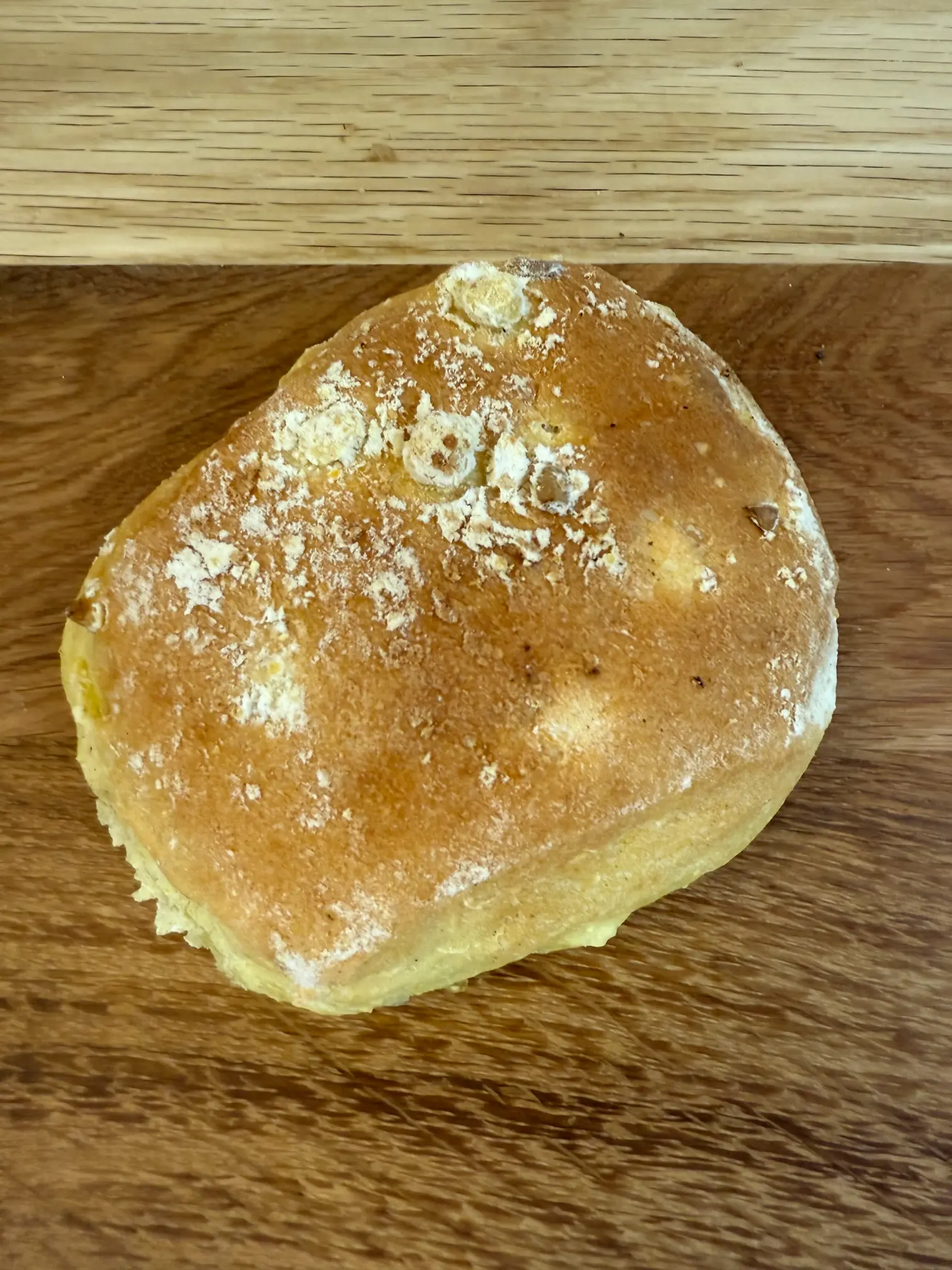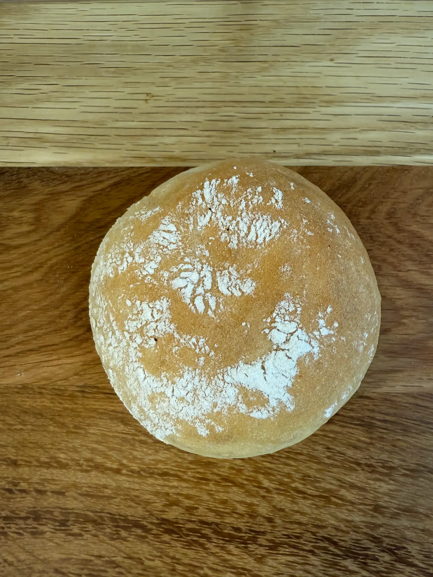 Durumvetemjöl, grahamsmjöl, vetemjöl, vatten, salt, olja, egen rågsurdeg.