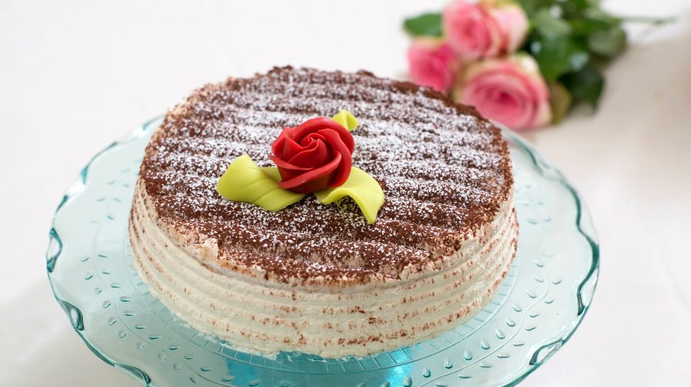 En älskad klassiker från Centraleuropa! Krispig hasselnötsmaräng, lättvispad grädde och fyllig choklad i ljuvlig harmoni. Varje lager smälter i munnen och tårtan är toppad med chokladplattor och ett generöst lager pudrad kakao för en elegant avslutning.