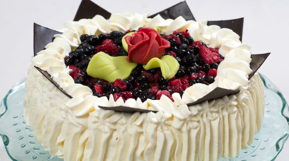En kunglig kombination av smak och valfrihet! Saftig tårta med vispad grädde och fyllning av vaniljkräm, blåbär och hallon precis som drottningsylt. Du väljer själv om den ska chokladkant, nötter, mandelspån eller grädde. En elegant tårta som passa alla tillfällen!