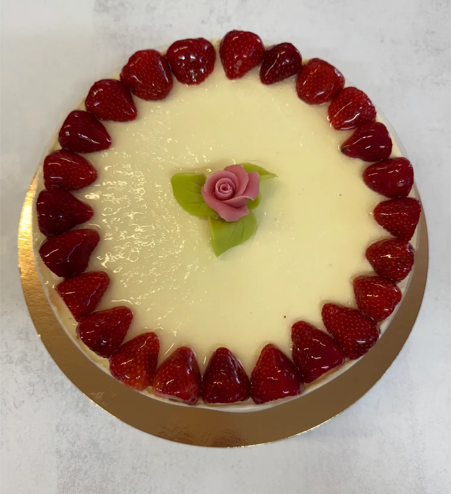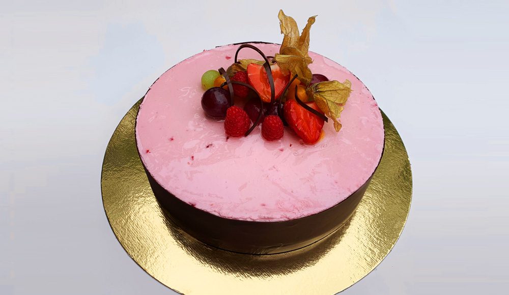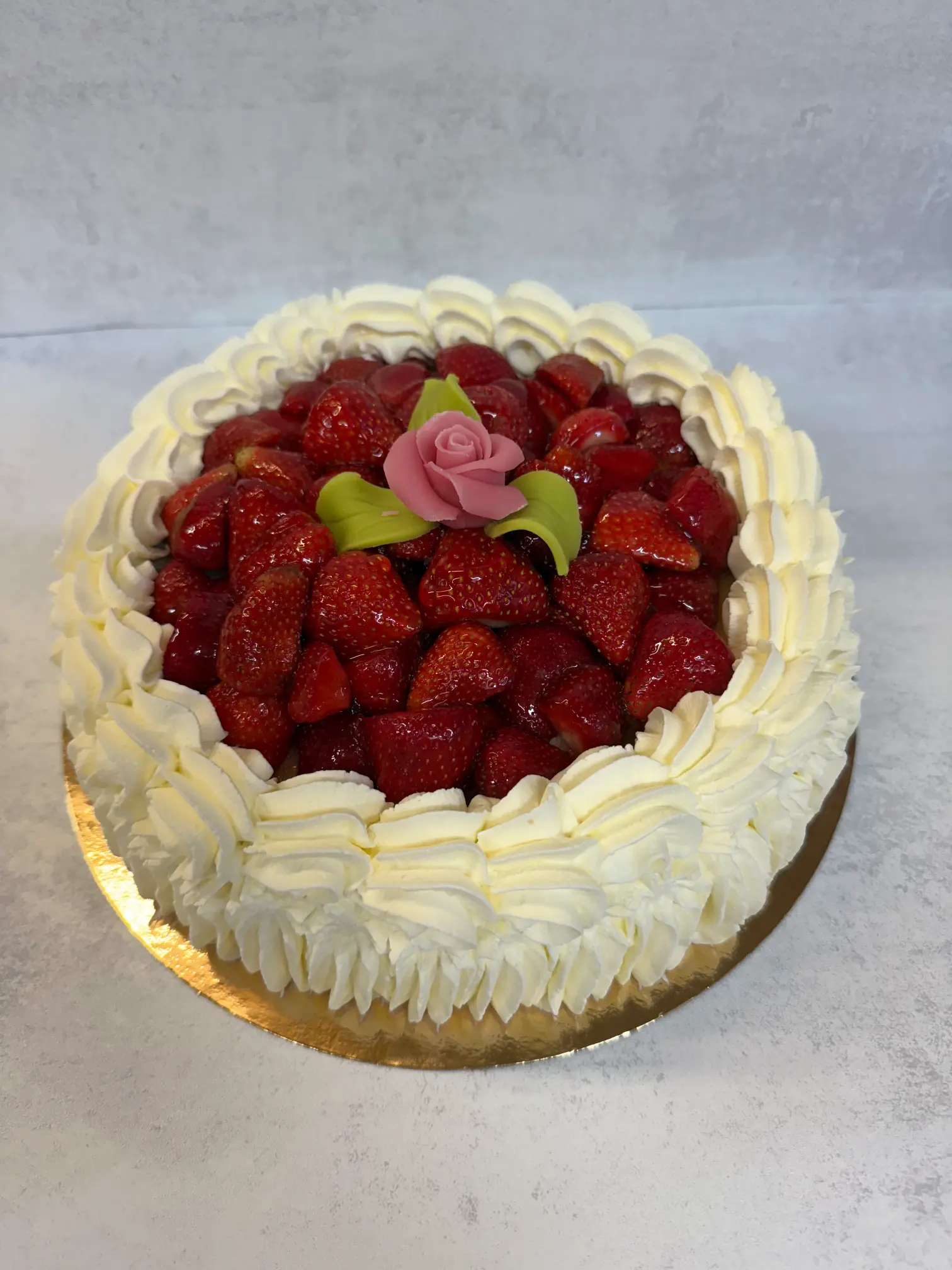 En tårta som gör varje tillfälle oförglömlig. Saftig chockladbrowniebotten, möter frisk jordgubbs-champagnemousse i en lyxig smakupplevelse. Dekorerad med bär eller frukt efter säsong – alltid lika vacker som god.
